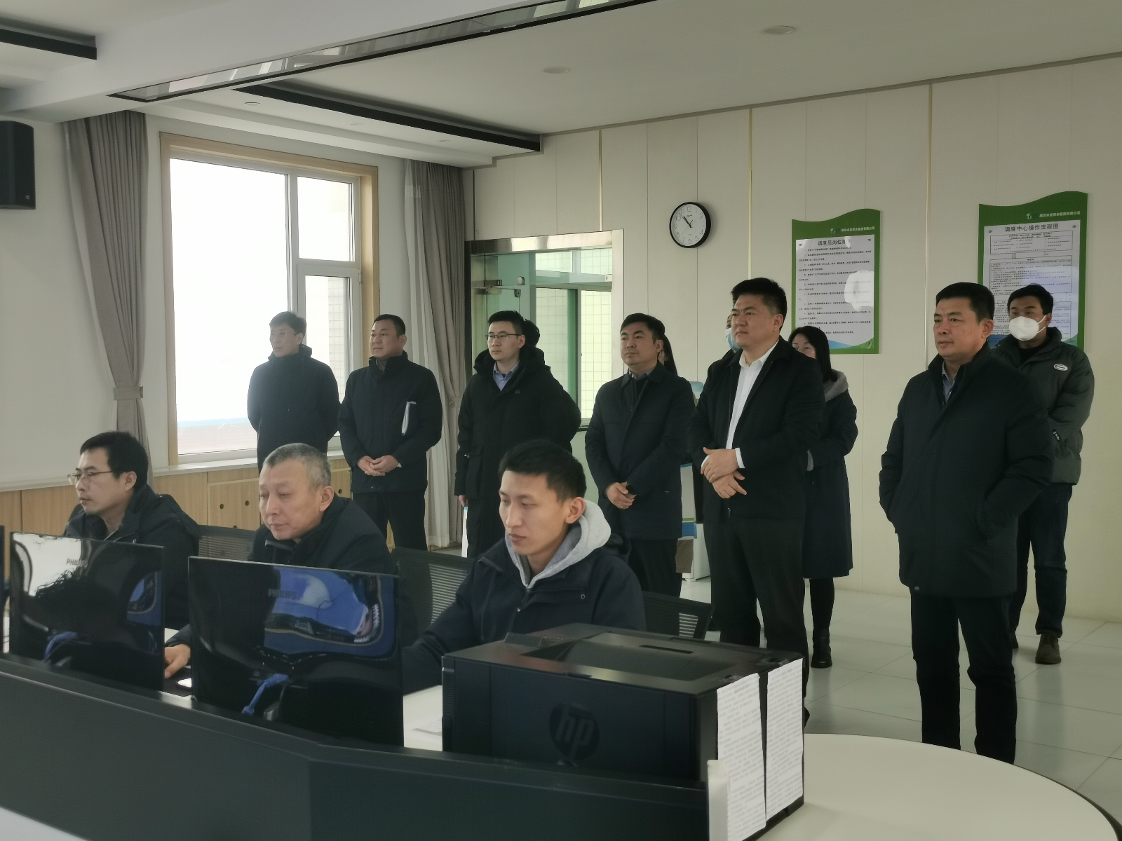 塵光總一行深入到智慧水務(wù)平臺參觀指導(dǎo),詳細(xì)了解區(qū)域供水統(tǒng)籌布局、區(qū)域供水綜合分析、區(qū)域供水調(diào)配及水廠運(yùn)行中水質(zhì)、水量、藥耗、電耗等情況。