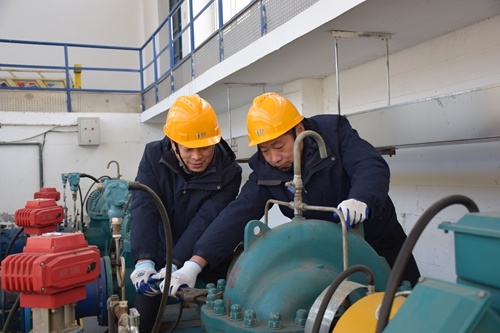 為保障嚴(yán)寒天氣下調(diào)水的安全穩(wěn)定,鄒平仁源周密部署、積極準(zhǔn)備,全力加強(qiáng)預(yù)報預(yù)測、巡查防守和應(yīng)急準(zhǔn)備。做好清淤工作,組織工作人員開展了胡樓引黃泵站攔污柵調(diào)水前清淤,同時組織檢修人員對潛水軸流泵進(jìn)行全面檢測維保,確保引水工作順利,引水水量達(dá)標(biāo)。加強(qiáng)預(yù)報預(yù)測,中控室全面把控各項數(shù)據(jù)監(jiān)測,通過自動化調(diào)度和信息化系統(tǒng),緊盯氣溫、水溫及進(jìn)水泵站進(jìn)水情況,保障泵站設(shè)備運行安全穩(wěn)定。保障巡查防守,加強(qiáng)對引黃渠道的巡查力度,安排專人每日往返60多公里的黃河干渠,進(jìn)行河道巡查、測流等保障任務(wù),并有序開展河道破冰除冰工作,及時處理因持續(xù)低溫導(dǎo)致的渠道過流能力下降等問題,保證渠道過水暢通,確保調(diào)水工作運行有序。