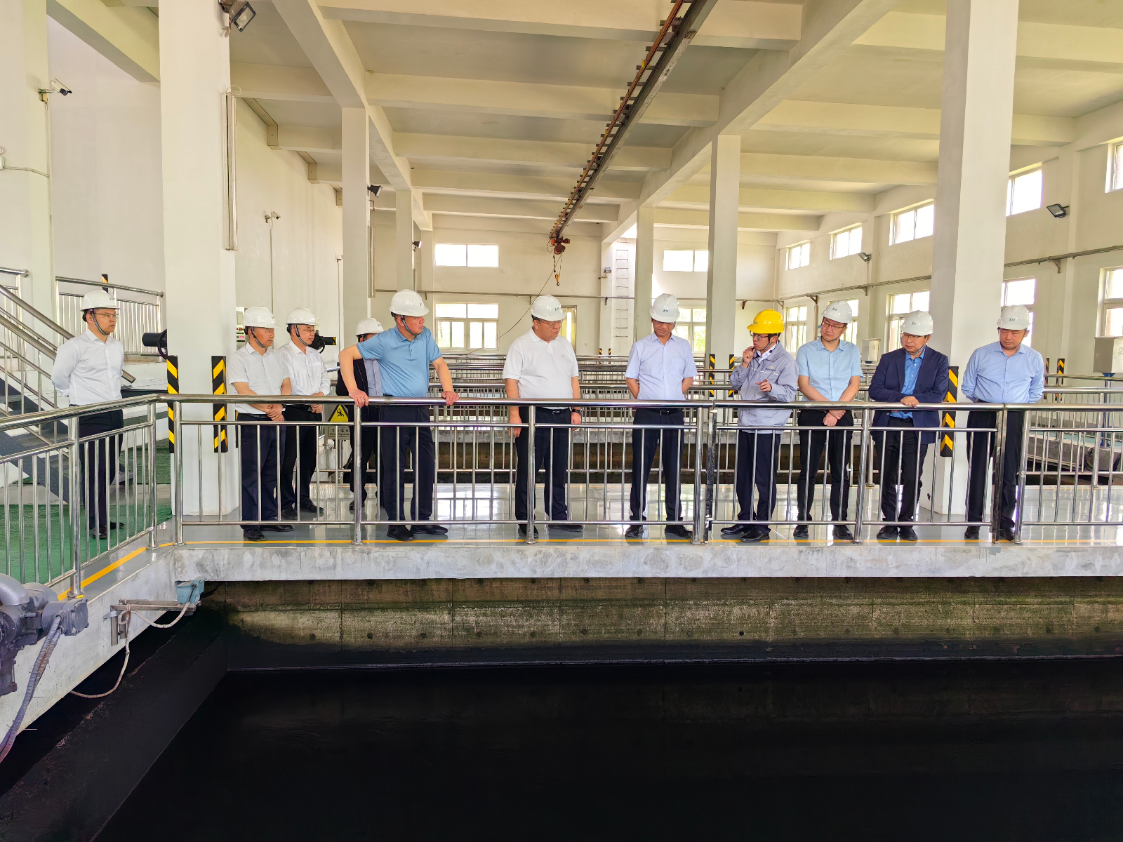 李建軍一行實地考察了濰坊水發(fā)供水集團第二平原水庫、黃水東調工程濰北二庫加壓泵站、惠澤第二水廠、智慧水務平臺等生產一線部門。詳細了解了濰坊水發(fā)供水集團供水能力、運營管理情況以及未來發(fā)展規(guī)劃,雙方就原水水質指標情況、自來水處理工藝、運營成本管控等方面進行了深入探討。
